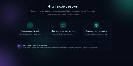 Прохождение основных уроков сезона, структурированных по модулям, представляет собой увлекательный и эффективный способ освоения материала. Каждый модуль фокусируется на определенной части темы, позволяя углубиться в ключевые аспекты. В рамках каждого блока предусмотрены разные задания, которые не только помогают закрепить полученные знания, но и развивают критическое мышление. Такой модульный подход способствует более глубокому пониманию материала и позволяет учащимся постепенно накапливать уверенность в своих способностях, создавая прочный фундамент для дальнейшего обучения.